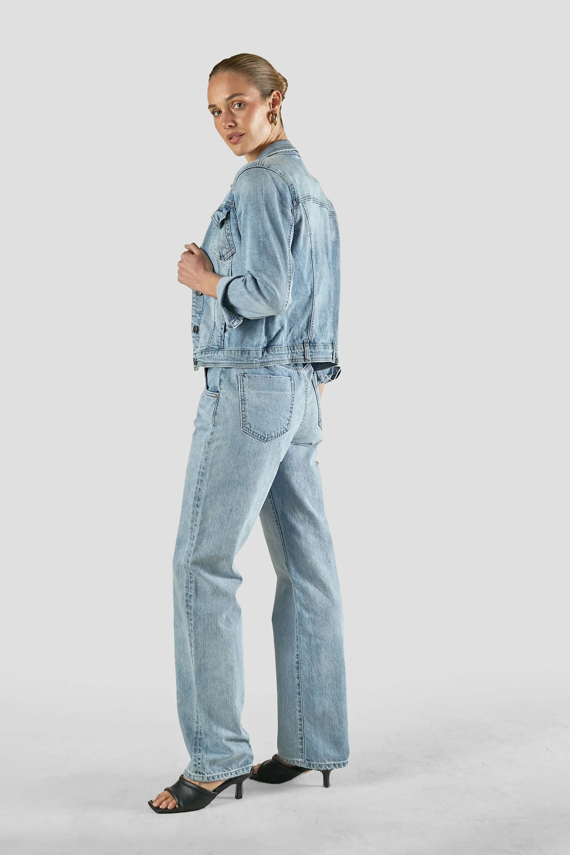Dita Sunbleached Denim Jacket provides a snug fit and feature comfortable stretch material. These slim denim jackets come with traditional chest pockets and are washed in a light sun-bleached hue.