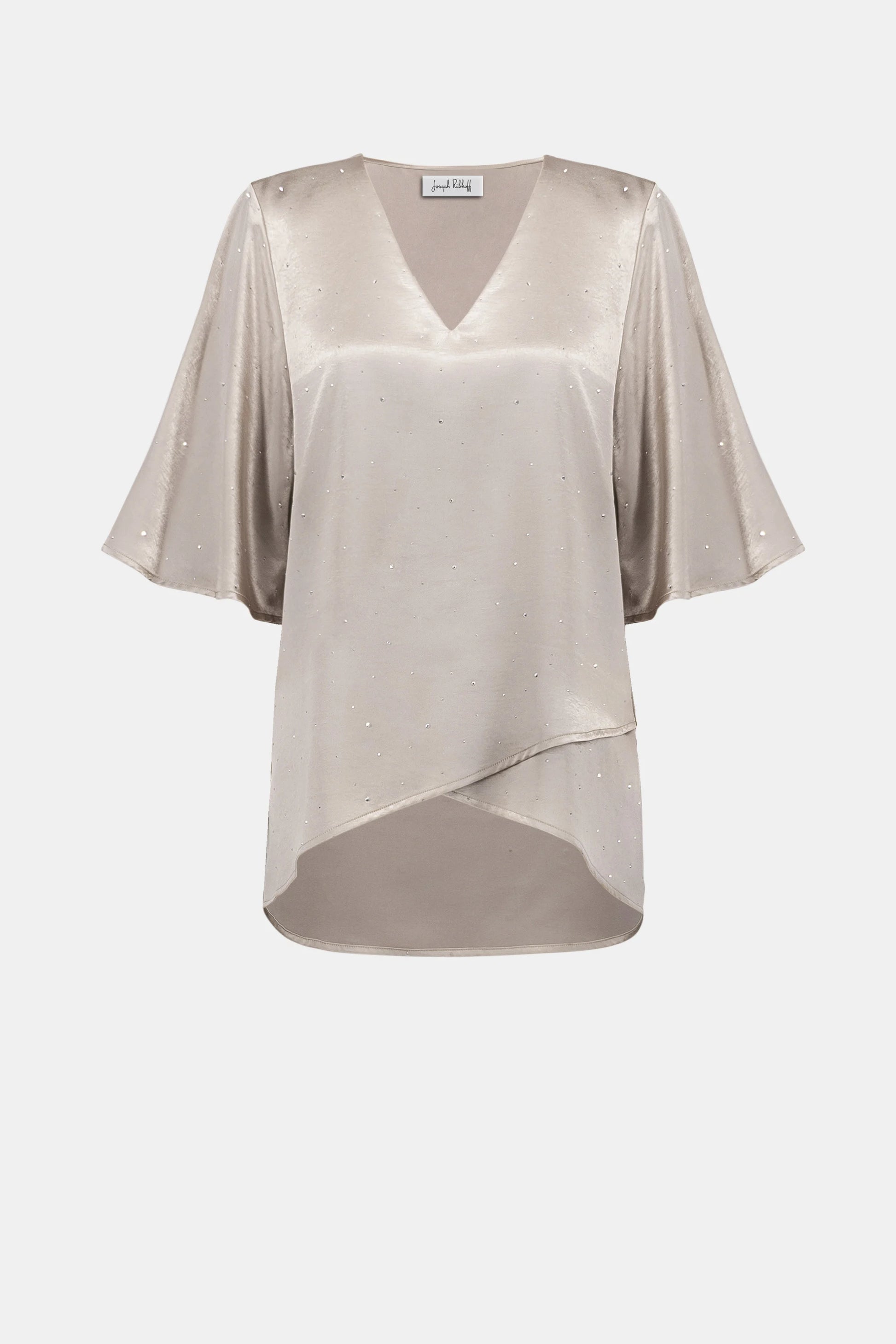 Joseph Ribkoff Signature Satin Rhinestone Boxy Tunic With Flutter Sleeves 262722 Feather Grey