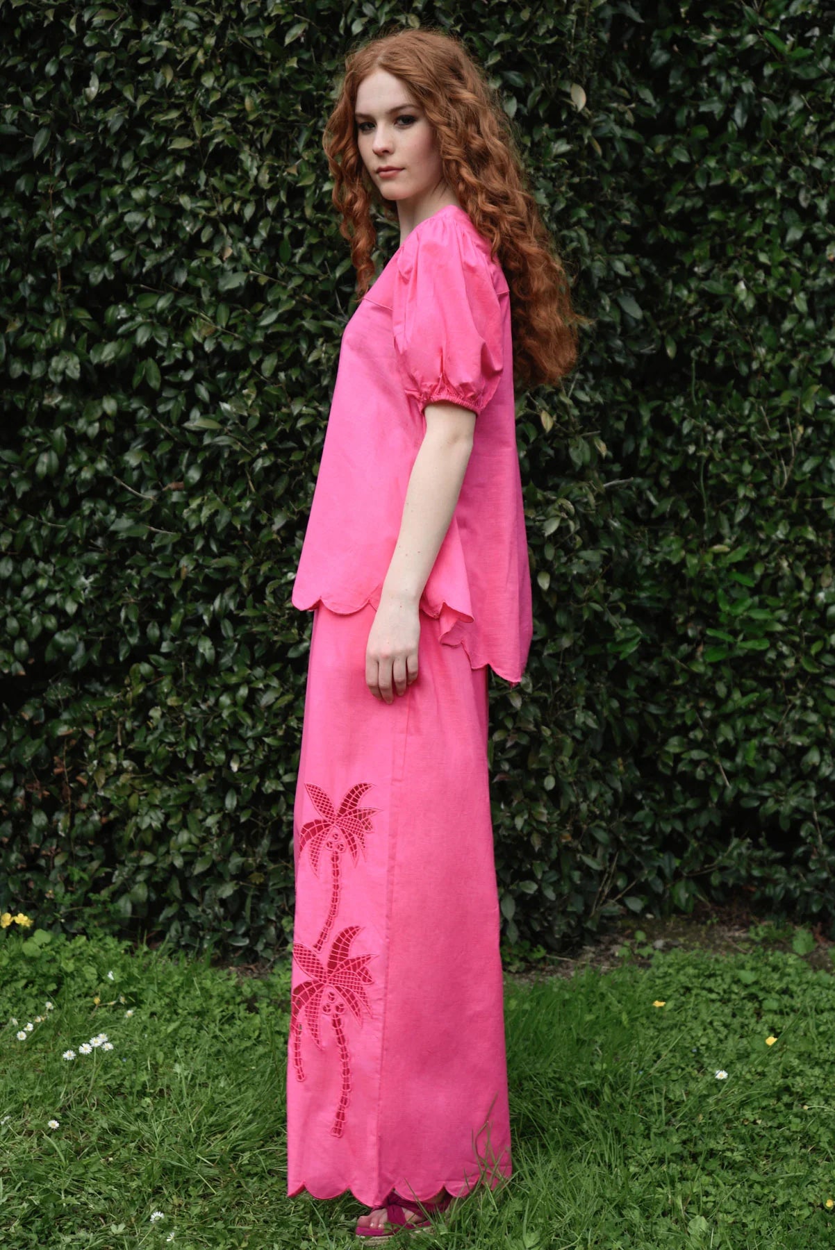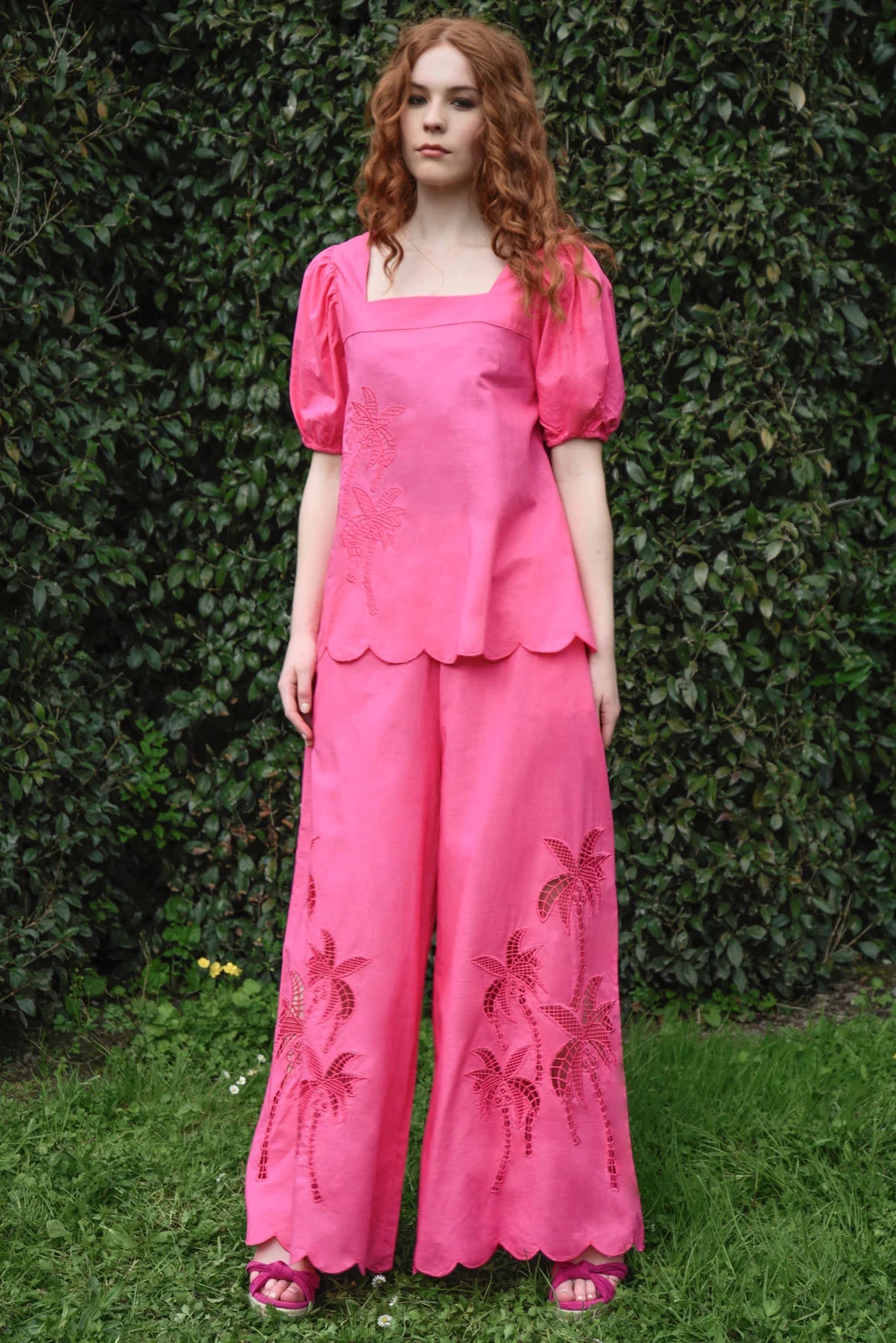 Adorned with tropical inspired cutouts and a scalloped hemline, the ‘City Sprints’ pants are a sensational summer addition. Crafted in the cotton, linen blend ‘Clash of the Textures’ fabric, these pants sport an elasticated waistband and generously wide leg, making them a comfortable choice for the fashion lover. Pair these with the ‘Just Roll with it’ top for a chic co-ord moment.